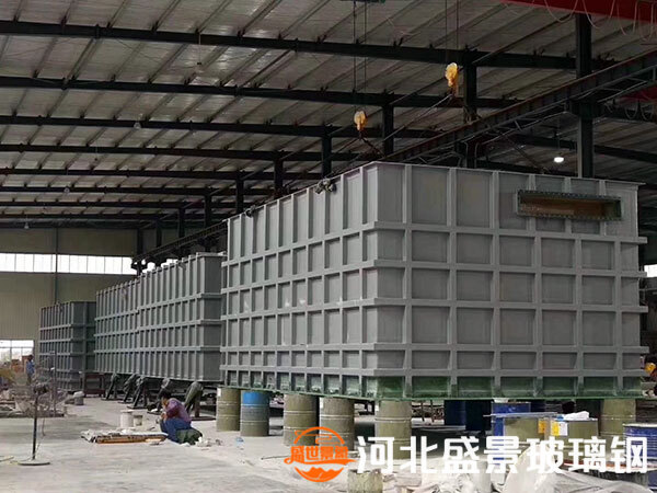 根據未使用的介質和溫度,玻璃鋼方槽由未使用的樹脂進行模具制作,研磨膏鋪設到一定厚度后,固化后去除內部磨料,根據未使用的鱗片制作外鋼骨架,起到加固外墻的作用。